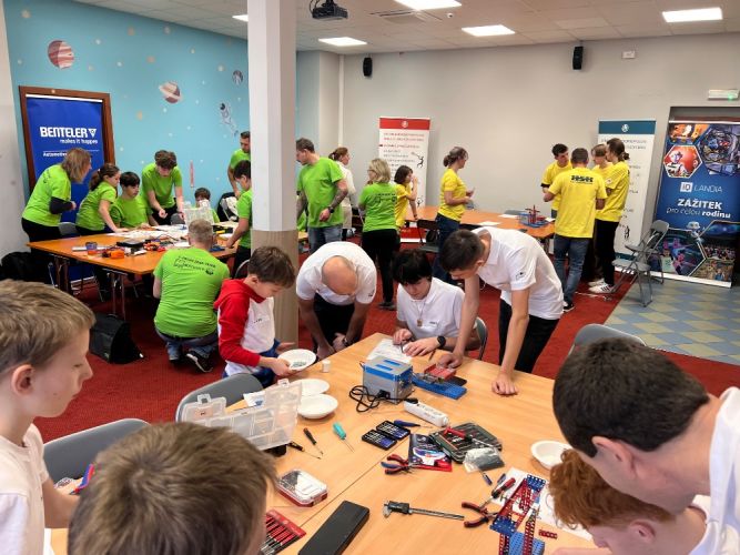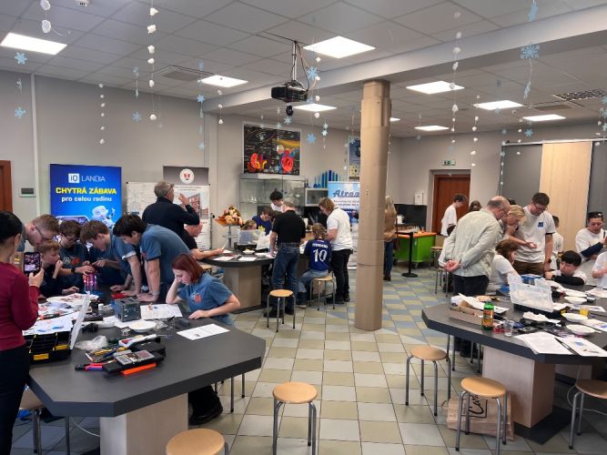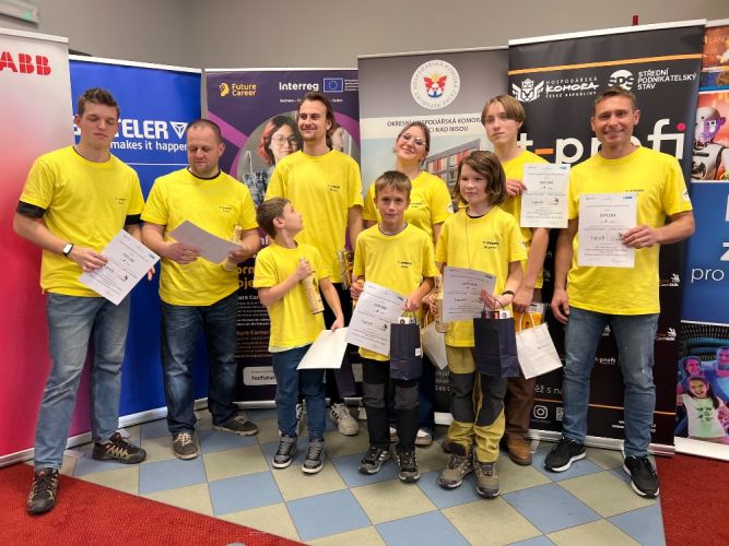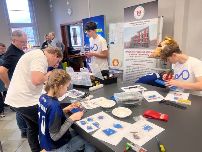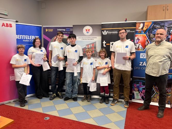 Krajské kolo polytechnické soutěže T-PROFI - Talenty pro firmy, kde se nad předem neznámým zadáním pohyblivého modelu z ikonické české stavebnice Merkur zapotilo 8 týmů složených z páťáků ZŠ, druháků SŠ a firem z LK se konalo ve čtvrtek 11.12.2025 v iQFABLAB | iQLANDIA